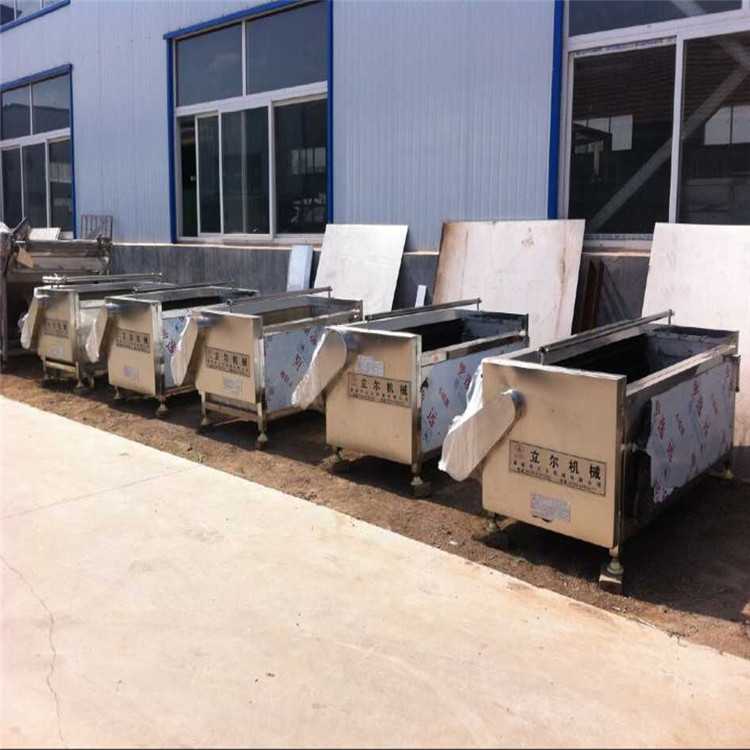 當(dāng)原料放入該機(jī)后,毛刷輥旋轉(zhuǎn)刷洗原料并使其不斷翻轉(zhuǎn),同時(shí),排水管不斷地噴淋,把從原料上刷洗下來的污物沖洗掉,直到洗凈為止,順著毛輥的旋轉(zhuǎn)方向出料。
